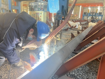 8.采用剛性?shī)A具固定法控制焊后變形。 9.采用構(gòu)件預(yù)留長(zhǎng)度法補(bǔ)償焊縫縱向收縮變形,如H型鋼縱向焊縫每米長(zhǎng)可預(yù)留0.6mm-0.7mm,每對(duì)橫筋對(duì)應(yīng)的型鋼長(zhǎng)度可預(yù)留0.5mm、采用預(yù)留周長(zhǎng)法,補(bǔ)償圓柱管構(gòu)件的焊縫縱向及橫向收縮變形,如板厚大于10mm時(shí),每個(gè)縱向及環(huán)向焊縫均預(yù)留2.0mm周長(zhǎng)。 10.對(duì)于長(zhǎng)構(gòu)件的扭曲,主要靠提高板材平整度和構(gòu)件組裝精度,使坡口角度和間隙準(zhǔn)確,電弧的指向或?qū)χ袦?zhǔn)確,以使焊縫角變形和翼板及腹板縱向變形值沿構(gòu)件長(zhǎng)度方向一致。 11.鋼結(jié)構(gòu)設(shè)計(jì)上要盡量減少焊縫的數(shù)量和尺寸;合理布置焊縫,除了要避免焊縫密集以外,還應(yīng)使焊縫位置盡可能靠近構(gòu)件的中和軸,并使焊縫的布置與構(gòu)件中和軸相對(duì)稱。
