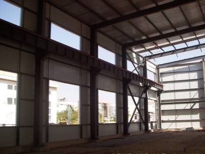 鋼柱與之焊接好,注意每塊鋼板之間的距離,再將其他的都焊接好之后,整體鋼架算是搭建好了。