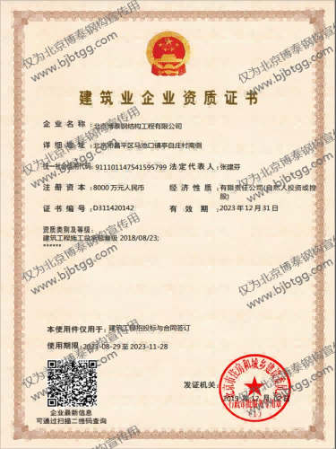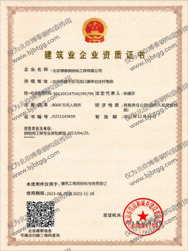 北京博泰公司資質(zhì)-北京博泰鋼結(jié)構工程有限公司